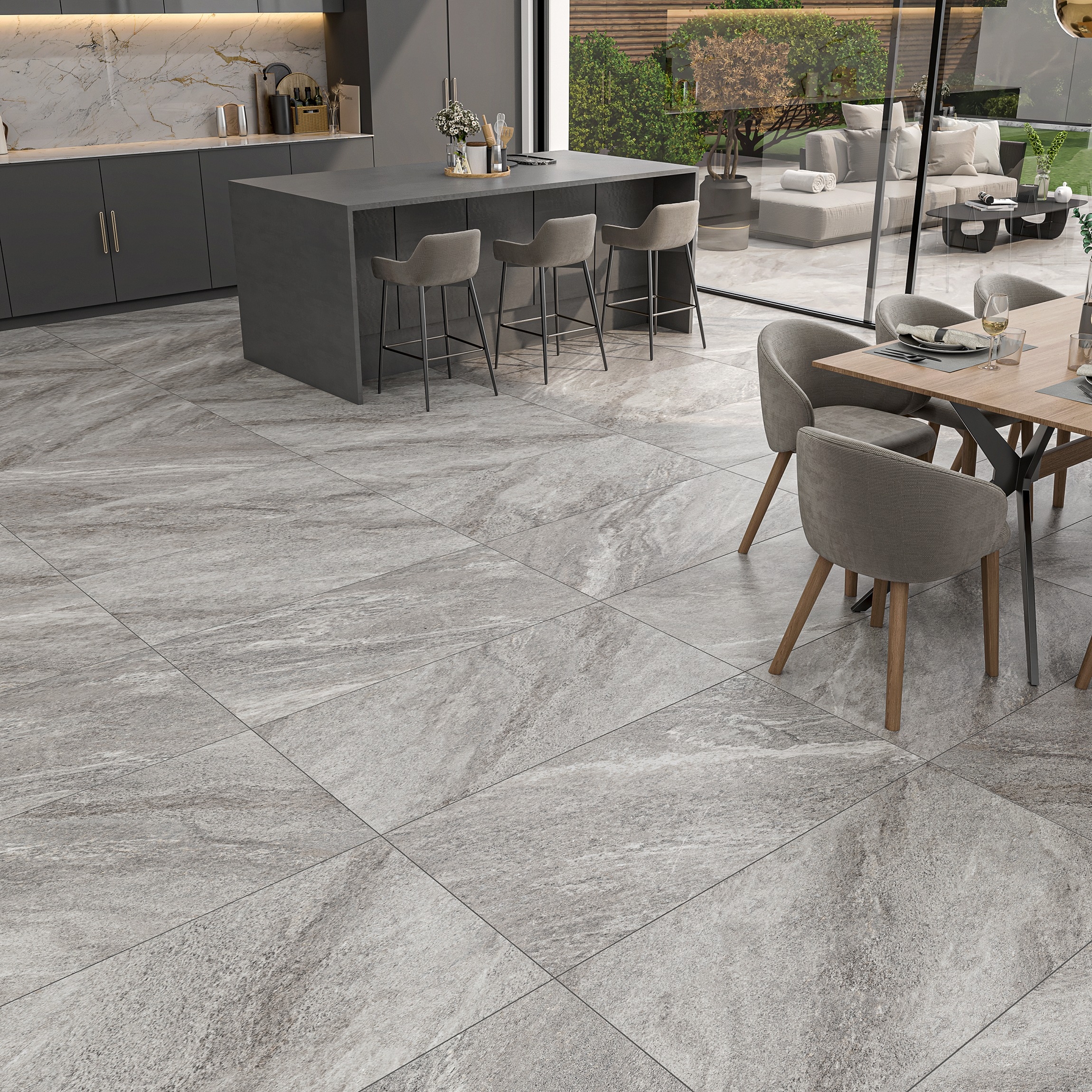 Strond Dolphin Grey Marble Effect Large Matt Porcelain Tile 120x60cm