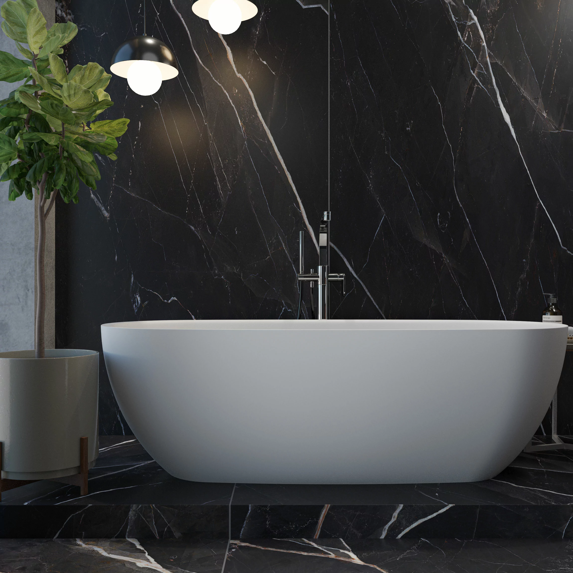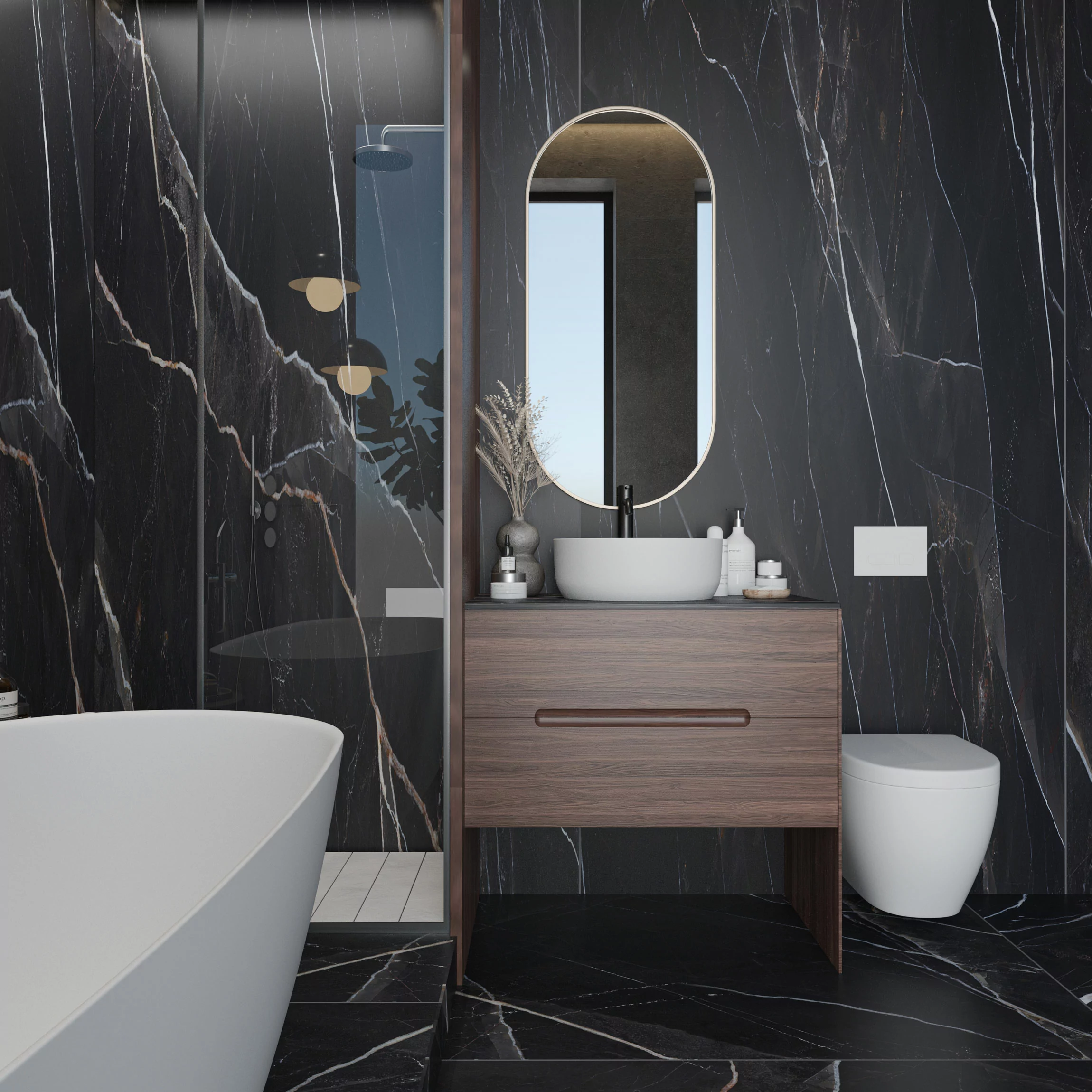 Combining the drama of deep tones with the elegance of marble styling, the Sublime Black Marble Effect Large Matt Porcelain Tile makes a bold impression in any contemporary interior. Crafted from durable porcelain, this large-format tile 275x100cm introduces striking veining across a charcoal-black base, delivering the look of natural marble without the required upkeep. The rectified edges offer tight grout lines for a seamless finish, while the matt surface softens reflections and adds a more natural feel underfoot. Suitable for both walls and floors, it brings cohesion and sophistication to spaces like bathrooms, living areas, or commercial environments.