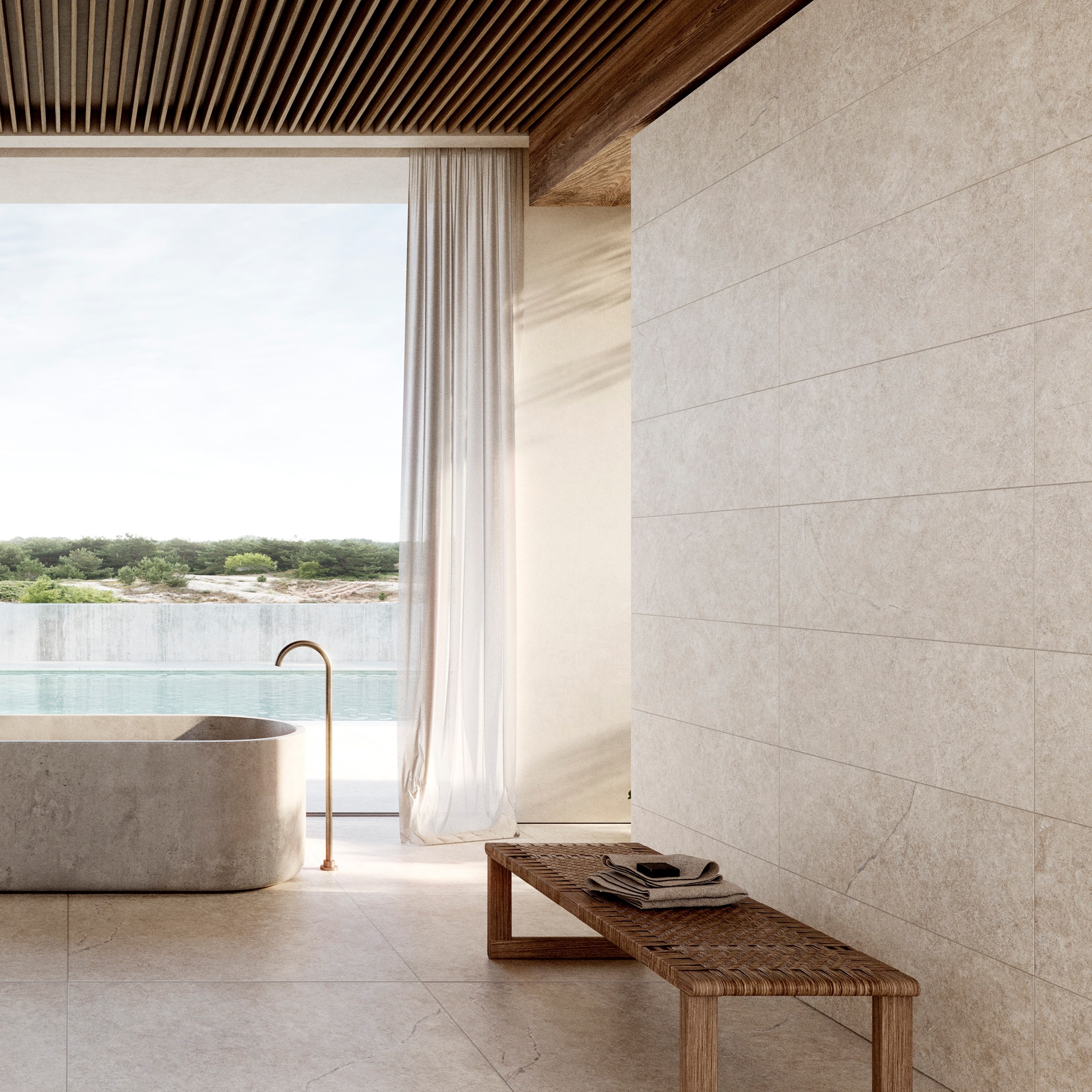 Linen Beige Travertine Effect Large Matt Porcelain Slab 275x100cm