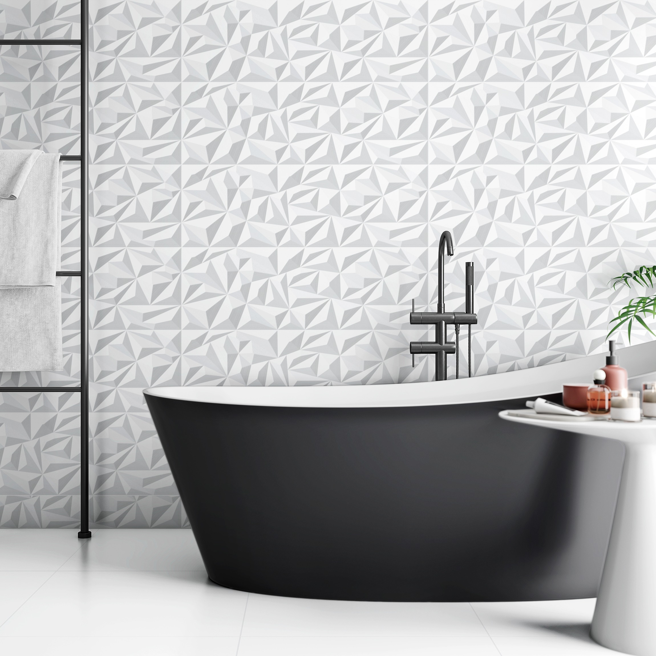 Metropolis Star Patterned Silver Ceramic Tile 45x45cm